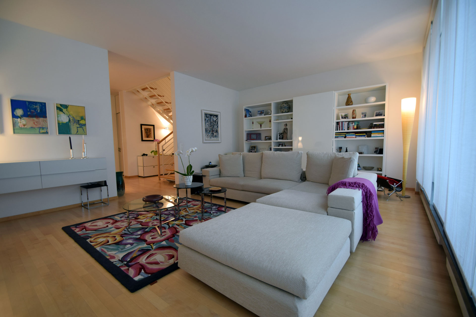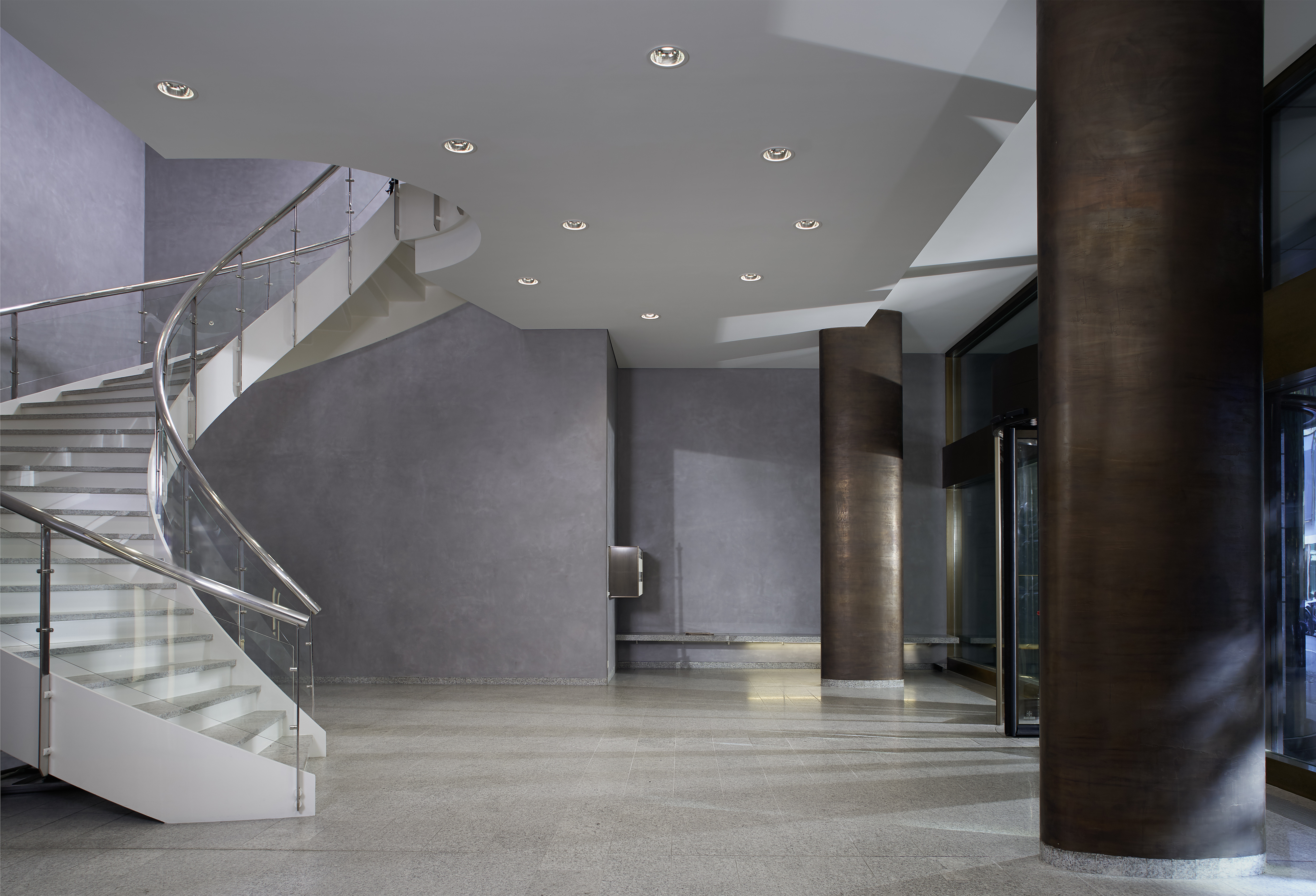 Was im Grossen Vorbildcharakter hat, muss auch im Kleinen stimmen. Überall wurde auf eine überdurchschnittliche Schallisolation geachtet. Langlebigkeit und nachhaltige Bauweise finden sich bis ins Detail. Verspiegelte Lifttüren, mit „Stukko Veneziano“ ausgekleidete Wände und Treppenhäuser sorgen für ein besonderes Ambiente. Edle Türen führen zu Wohnungen mit hohen Räumen und zu gediegenen Arbeitsplätzen.